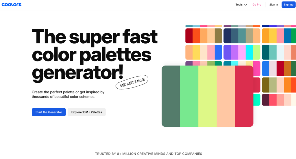 Coolors est l’un des outils les plus populaires pour générer une palette de couleurs en quelques secondes.